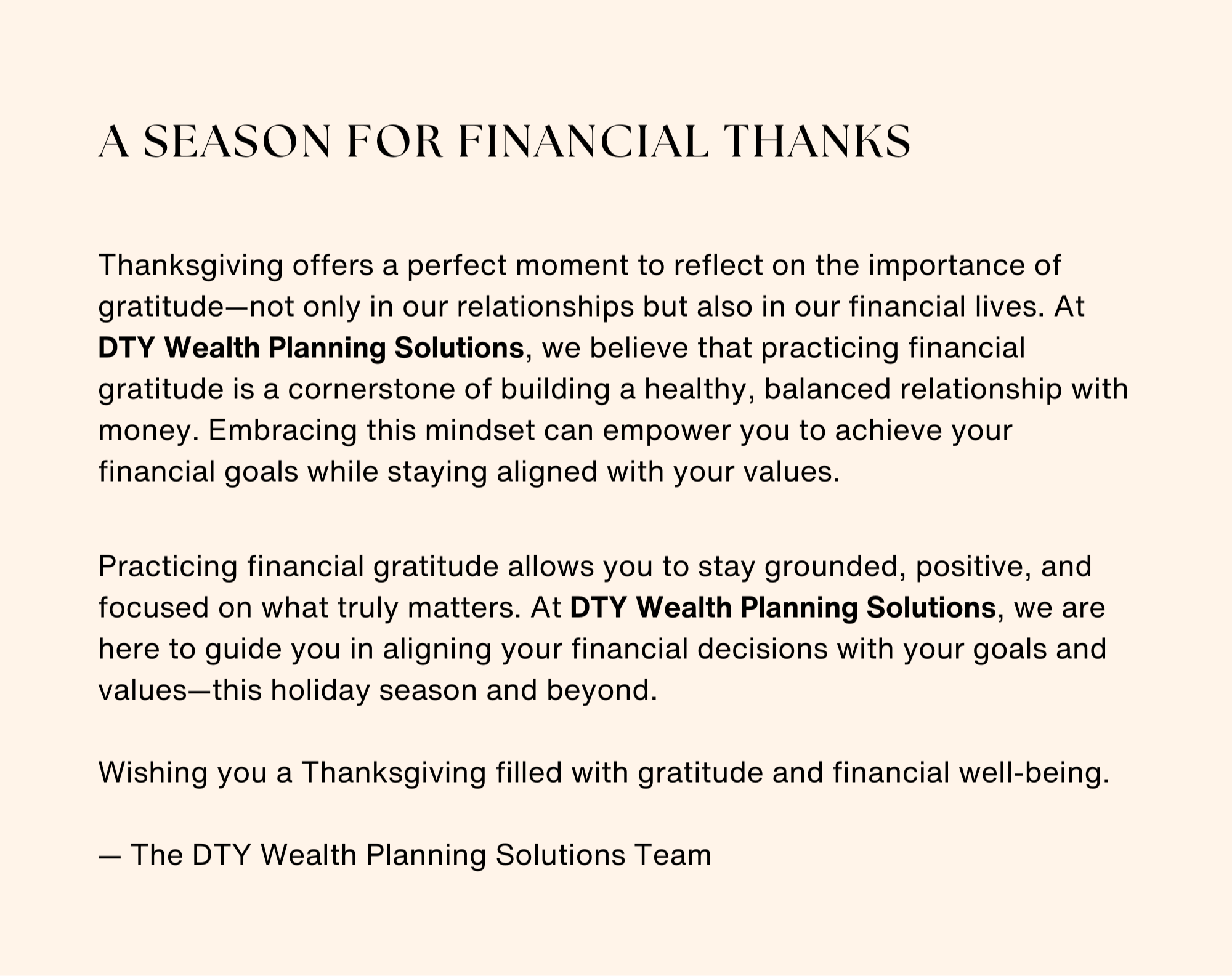 A Season for Financial Thanks